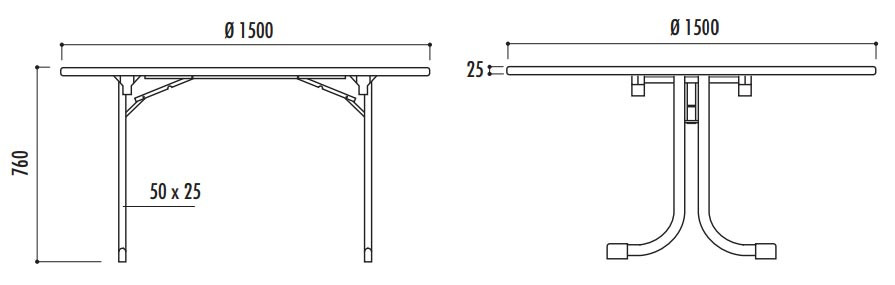 | Réf. TC :517089877 | Table ronde pliante empilable | Ø 1500 | 760 | 34 | -