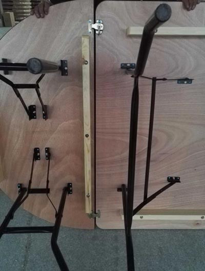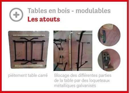 - Pour les compositions ovales avec tables demi-ronde : assemblage des tables entre elles par loqueteaux métalliques galvanisés