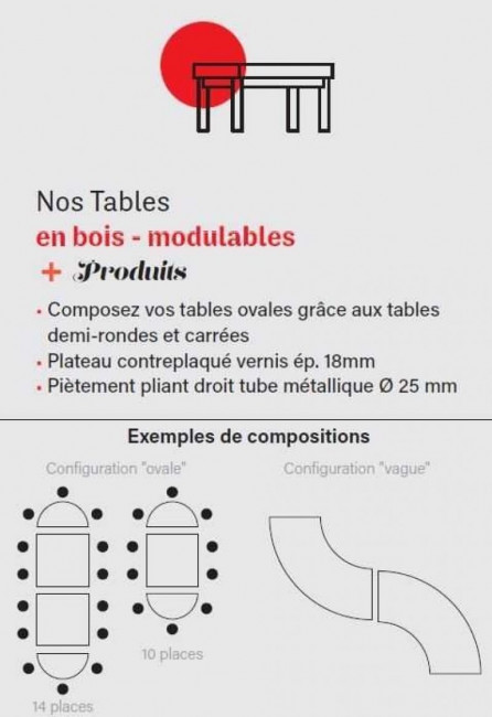 Cette table pliante bois polyvalente est idéale pour composer des tables en configuration ovale.
