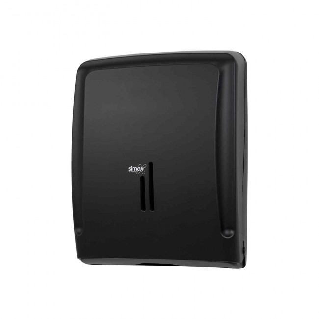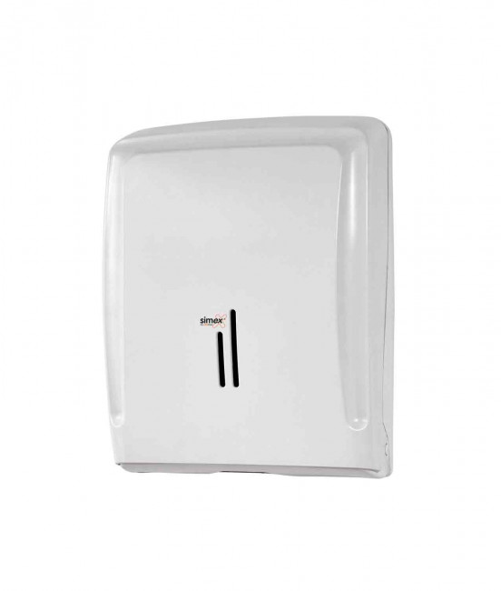 Ce distributeur pour papier essuie-mains pliés dispose d’une fente pour contrôler en permanence le niveau de papier restant.