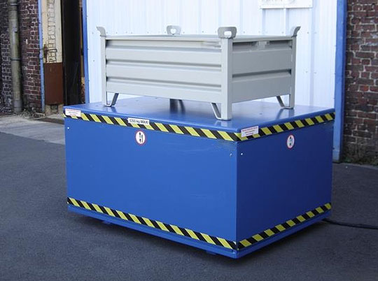 Table élévatrice pour 2 ou 3 palettes de 800/1200 donc un plateau de 900/1300cm env Charge 1 tonne. Fixe( on prévoit de mettre une fosse) Besoin Urgent. Merci.