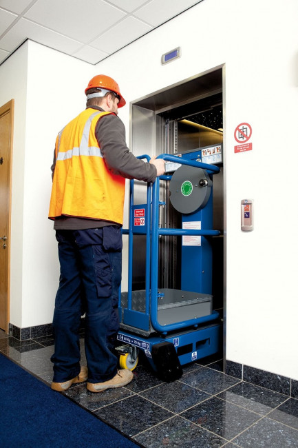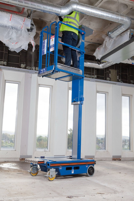Cette plateforme élévatrice mobile sert à lever les personnes ou les matériaux en toute sécurité.