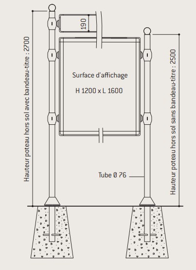 - Hauteur hors sol 2500 mm, sans bandeau-titre ou
