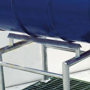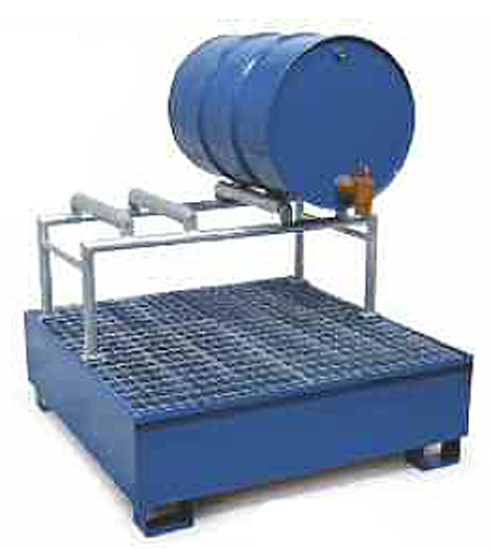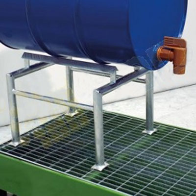 Support de soutirage de fûts, d’une construction robuste en acier galvanisé à chaud, se pose sur le bac de rétention pour créer un poste de soutirage ou de stockage pour fûts.