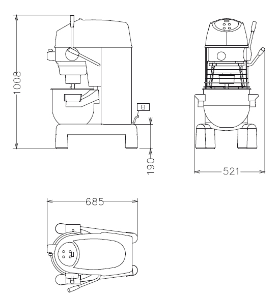 - Cuve Inox 18/8 - 3 outils : crochet, palette et fouet.