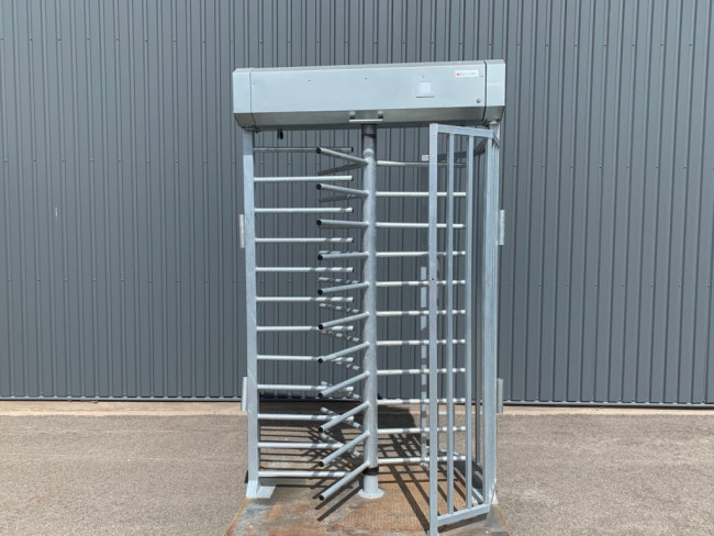 Le tourniquet de chantier optima a une hauteur totale de 2530mm et est soudé sur une tôle de passage de 1200mm par 150mm et un poids de 405 kilos.
