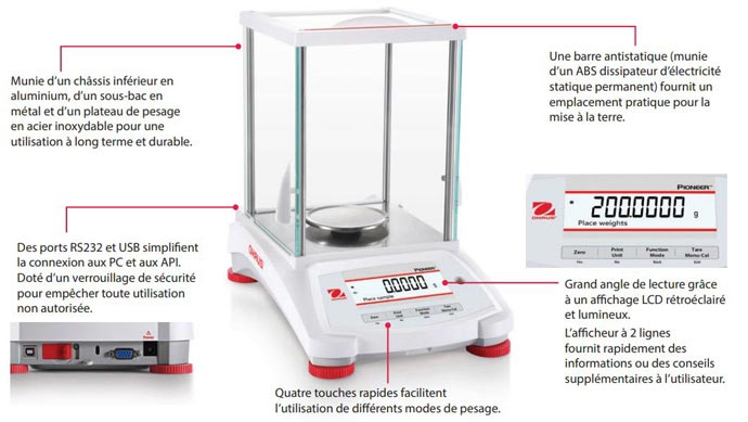 Les interfaces USB et RS232 intégrées connectent la balance de précision aux ordinateurs, imprimantes et systèmes LIMS.