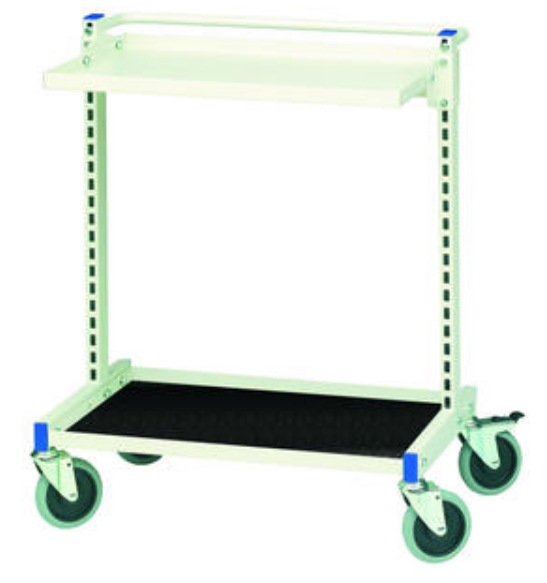 - 4 roulettes à bandage caoutchouc (2 fixes et 2 pivotantes avec frein).