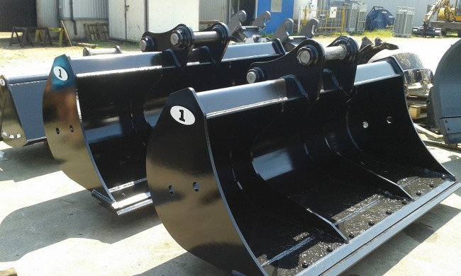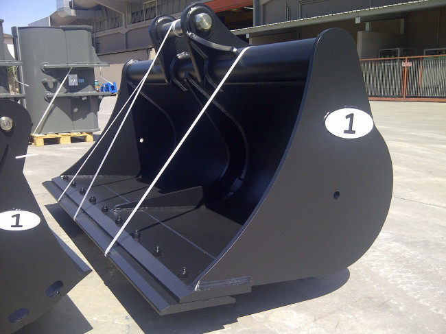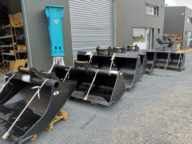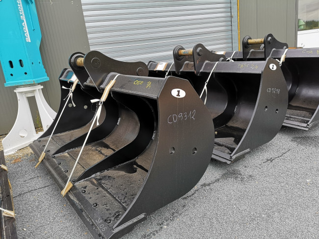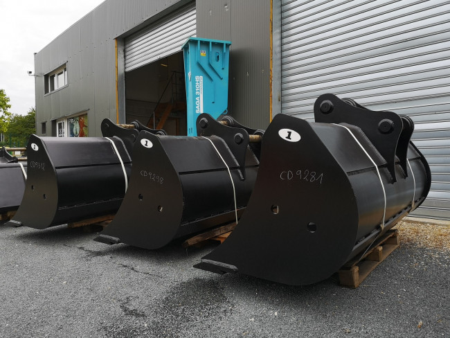 Large gamme de godets curages fixes pour pelles et minipelles de 1 à 50 tonnes, avec contre-lame réversible ou lame soudée.
