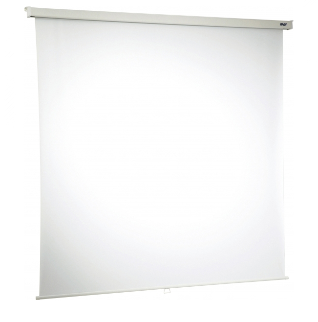Cet écran de projection manuel est adapté pour des fixations mixtes, murales ou au plafond intégrées aux extrémités de l’écran.