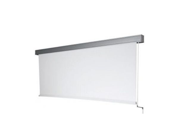 Cet écran de projection manuel à manivelle permet d’installer un écran de grande longueur même si il n’y a pas d’alimentation électrique à proximité.