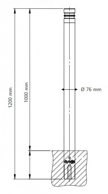 Vous réalisez un scellement direct dans le sol sur une profondeur de 200 mm (hauteur hors tout 1200 mm - hauteur hors sol 1000 mm).