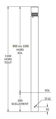 Ce potelet de ville galva mesure 76 mm de diamètre et peut être installé à différentes hauteurs, selon les besoins : 900, 1000, 1200 ou 1300 mm.