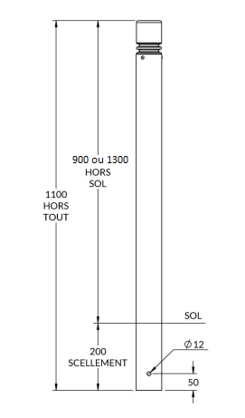 Fiche technique - Potelet - Ø 76 mm - H. 900 mm - A sceller