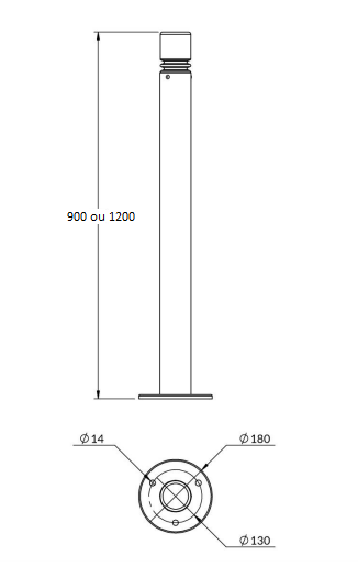Fiche technique - Potelet - Ø 76 mm - H. 900 mm - Sur platine