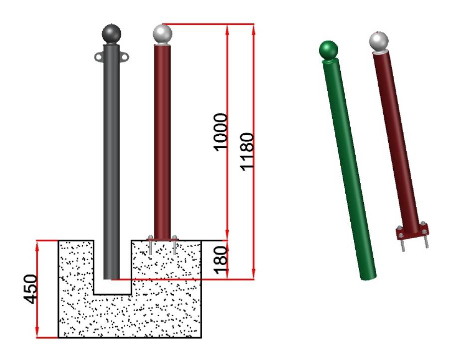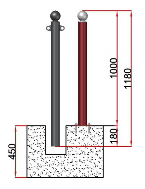 - Hauteur totale : 1180 mm (1000 mm hors sol + 180 mm pour scellement)