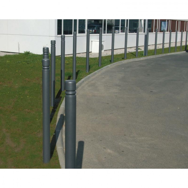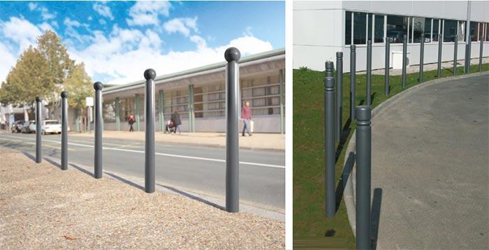Le potelet est fabriqué en tube d’acier d’un diamètre de 76 ou 114 mm.