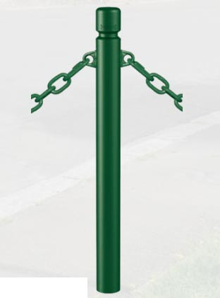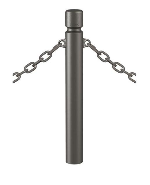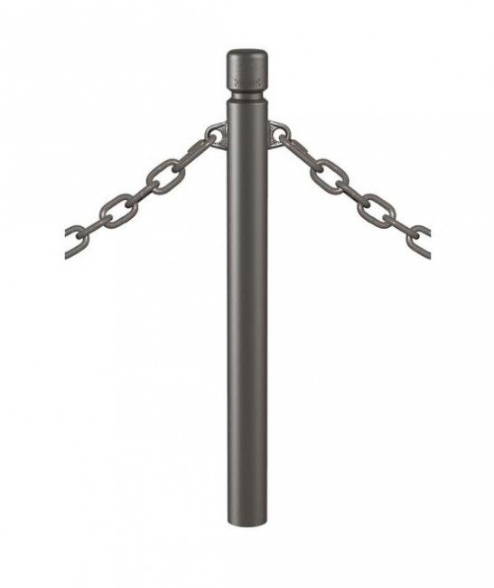 Ce potelet à chaines en tube acier est un mobilier urbain conçu pour délimiter les espaces publics.