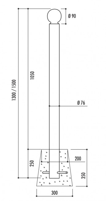 Hauteur hors sol : 1050 mm - Ø 76 mm - Acier