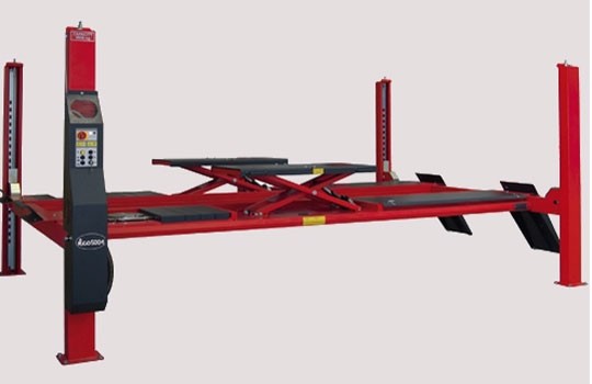 Le pont élévateur 4 colonnes plateaux bas, particulièrement adapté aux véhicules à faible garde au sol.