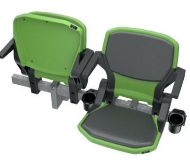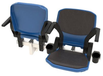 Ce siège de gradin rabattable est équipé d'accoudoirs et offre la possibilité d'ajouter divers accessoires optionnels tels que des porte-verres.