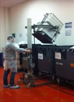 2 eme problématique solution de manutention ,levage basculement modèle embarquer ds un véhicule pour des bidons en plastique 220 litres