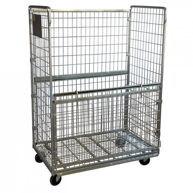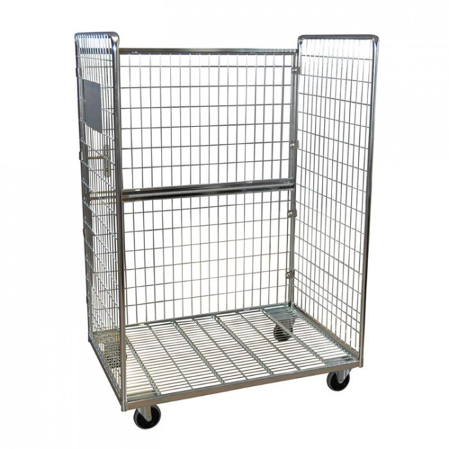 Le chariot roll palette en 3 côtés en fil d’acier convient aux activités de transport interne, à la préparation de commandes et au stockage intermédiaire.