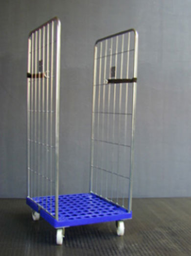 28/04/2015Chariot roll base plastique 3 cotés fermés avec 3 ridelles amovibles, base plastique.