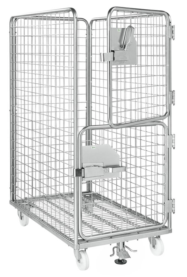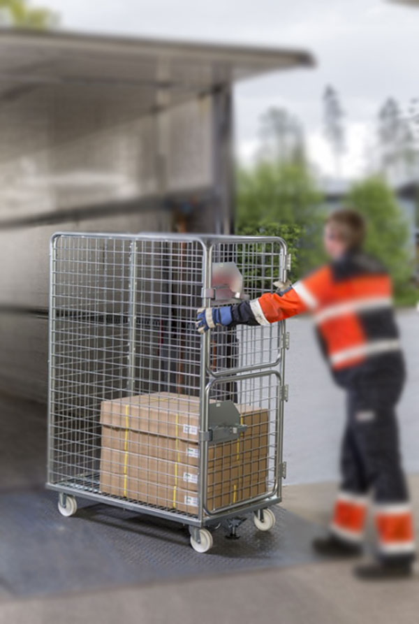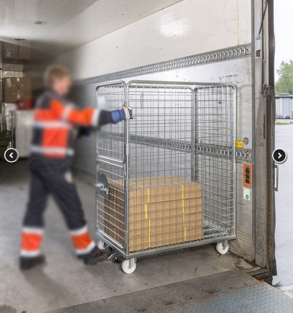 Transportez des objets de valeurs ou fragiles dans un conteneur avec le chariot roll sécurisé à mailles !