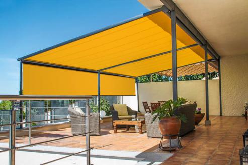Une pergola couverture toile découvrable manuellement 3.5m de profondeur sur 5m de longueur hauteur 2.2m