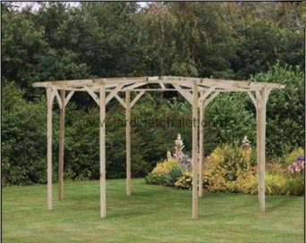 Aménagez votre jardin, en mettant en place une pergola circulaire en bois.