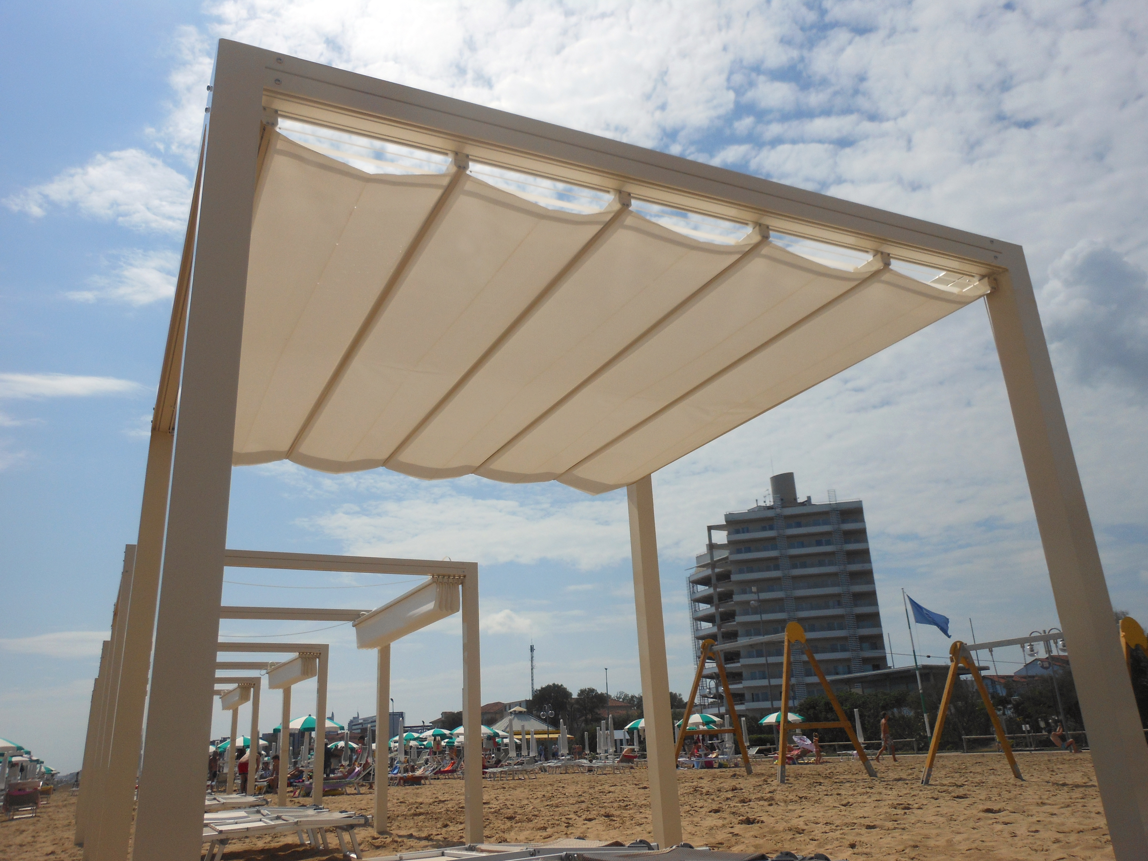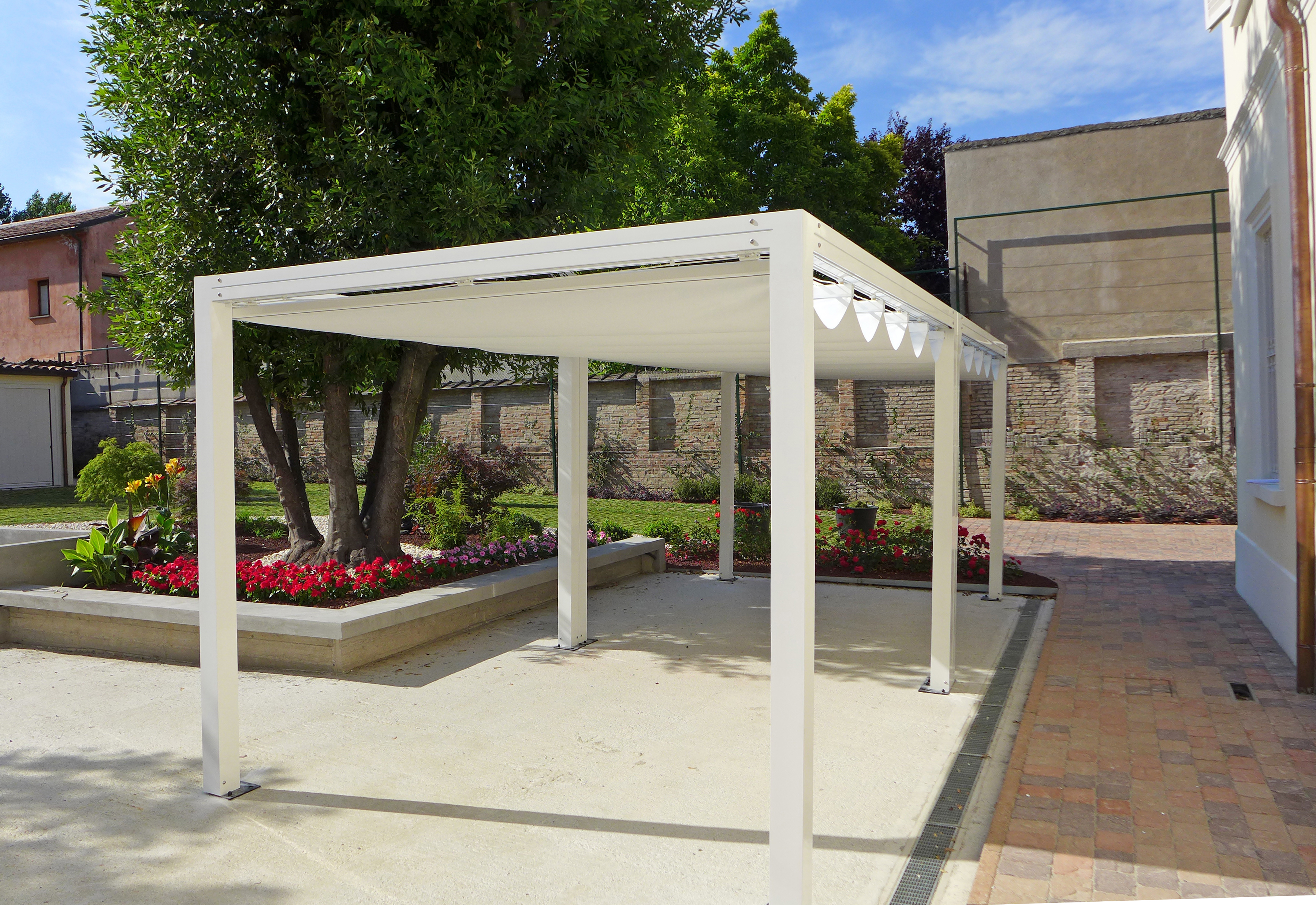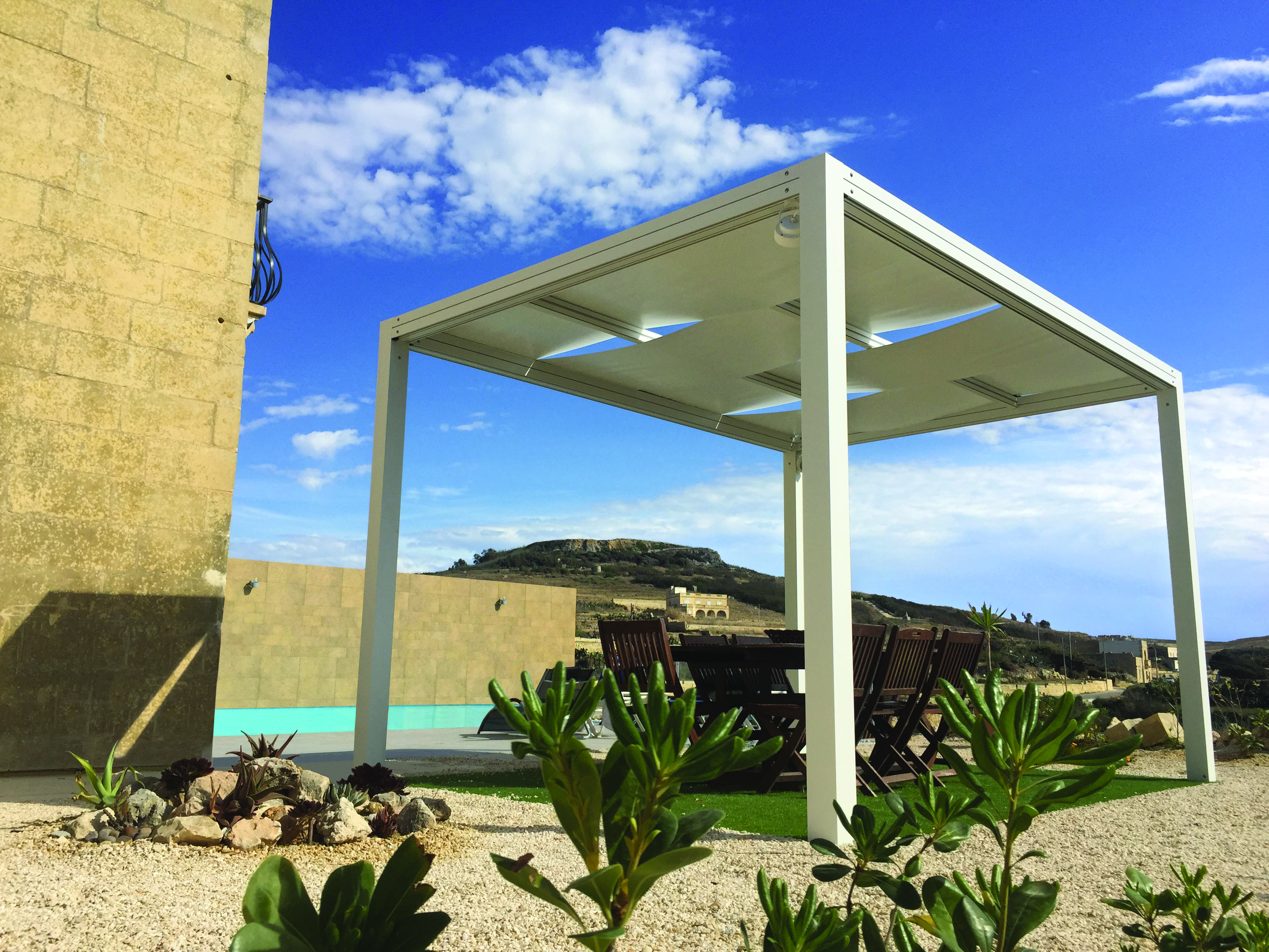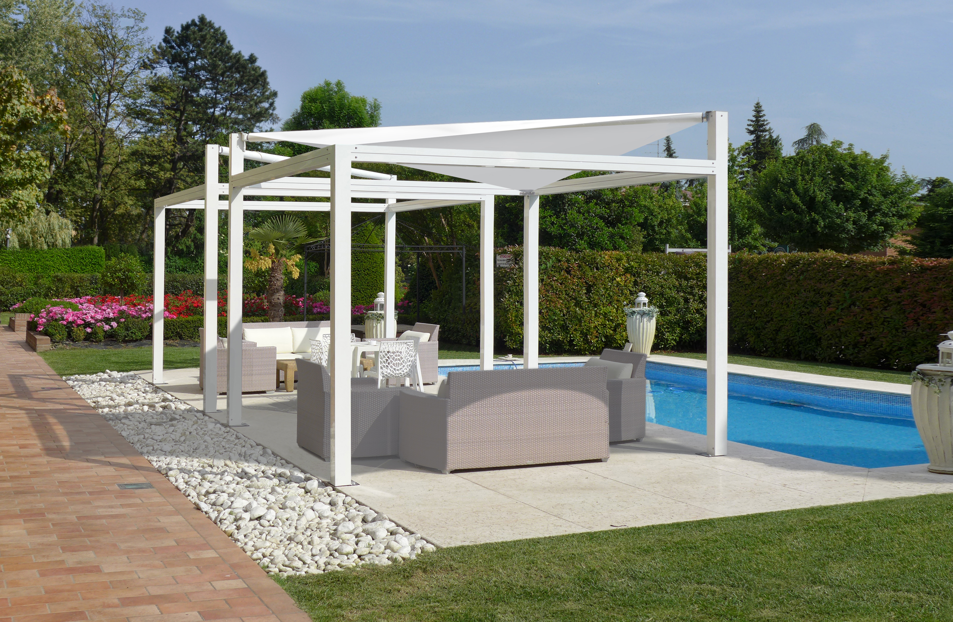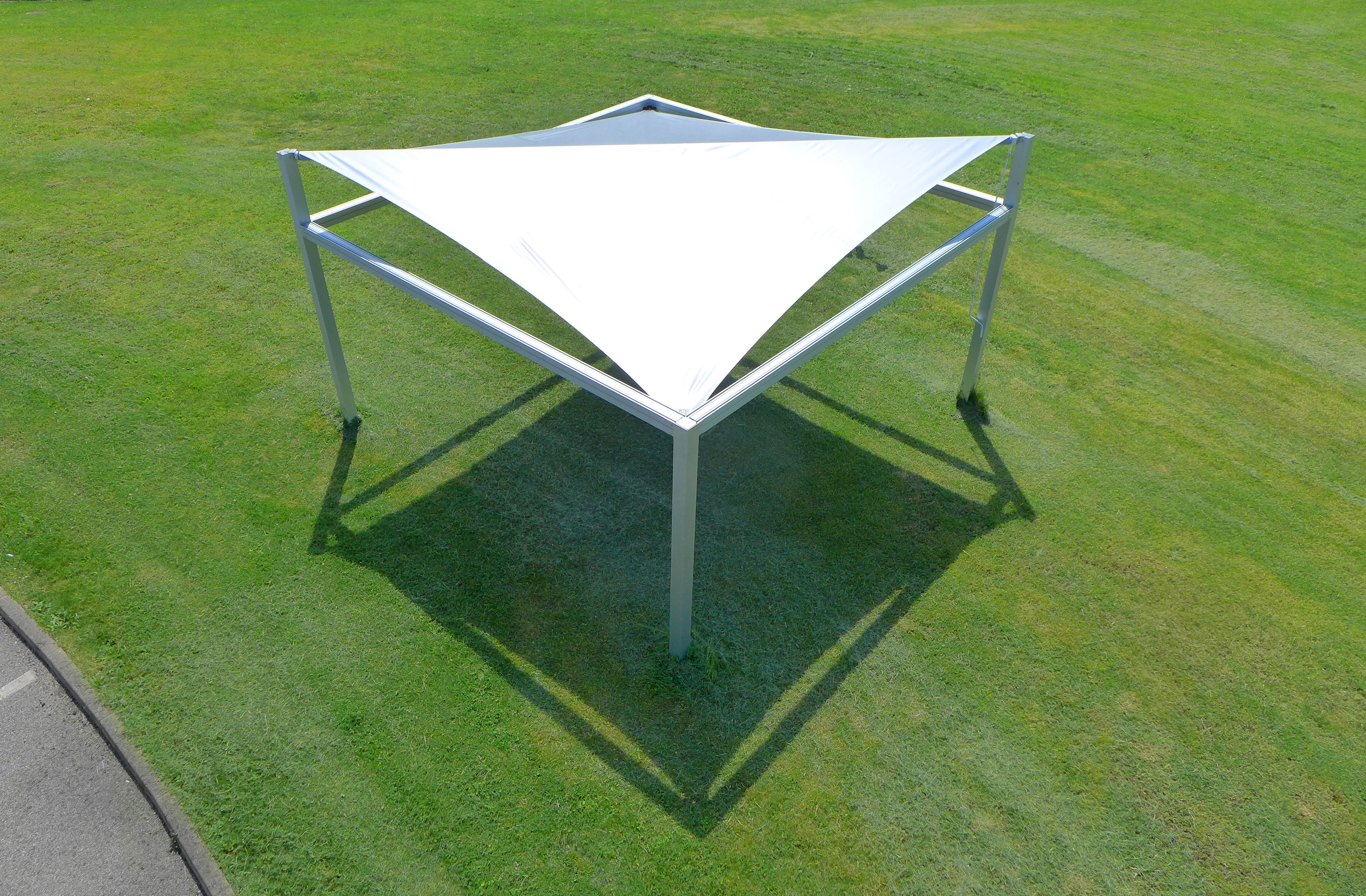 - Modèle 1 : La couverture se compose de deux voiles fixées à un enrouleur placé sur la diagonale de la structure.