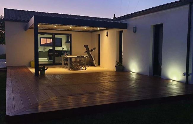 - Pergola avec spots intégrés sur terrasse bois
