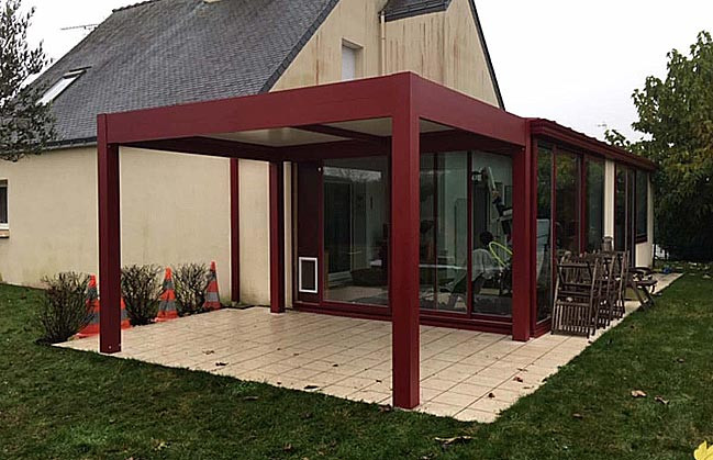 - Pergola attenante à une véranda rouge Basque