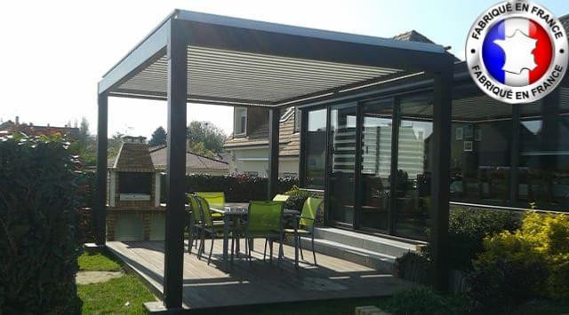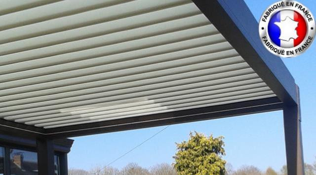 Cette pergola bioclimatique à lames orientables permet d'aménager vos extérieurs.