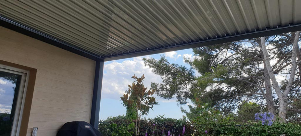 pergola bioclimatique à lames plates est une solution pour aménager un espace extérieur tout en régulant la lumière et la ventilation.