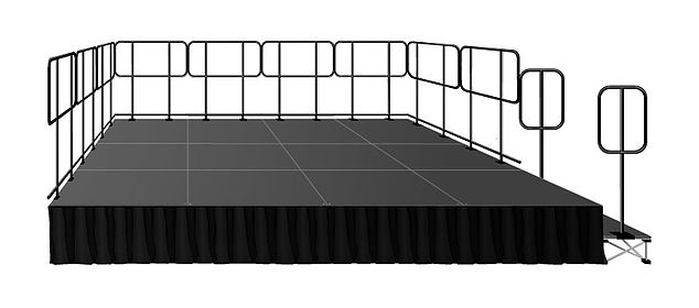De nombreux accessoires, différents escaliers, stockage rapide ou intégral, fond de scène, système de roulettes, garde-corps, rampes, juponnage, juponnage avec logo ou images etc.