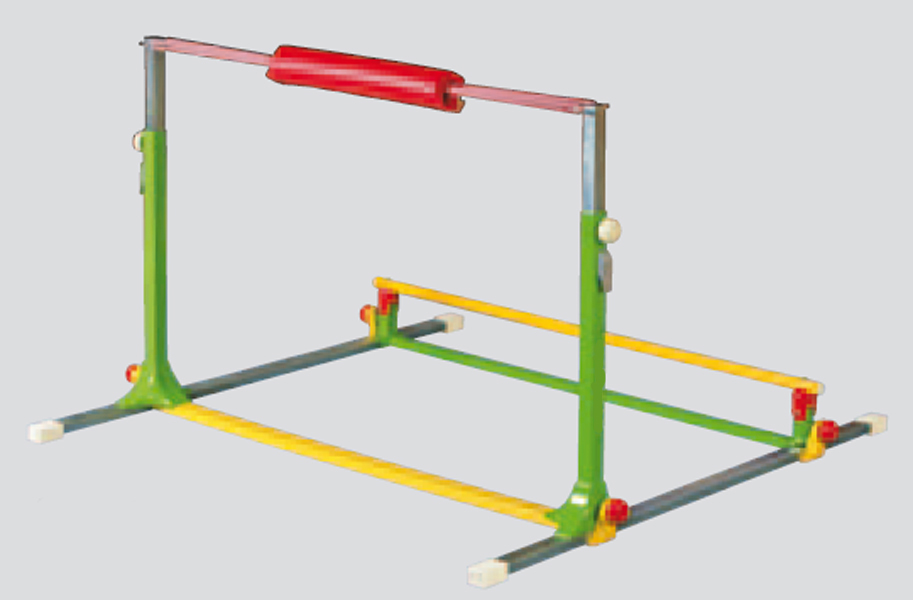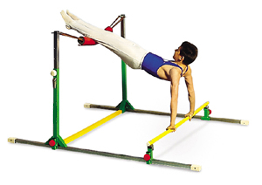 Accessoire idéal réglable en longueur et en hauteur, adaptable au gabarit du gymnaste en faisant varier le nombre de sandows utilisés.