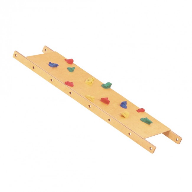 Notre pan d'escalade pour enfant permet de s'adapte aux échelles, fabriquées en bois teinté vernis.