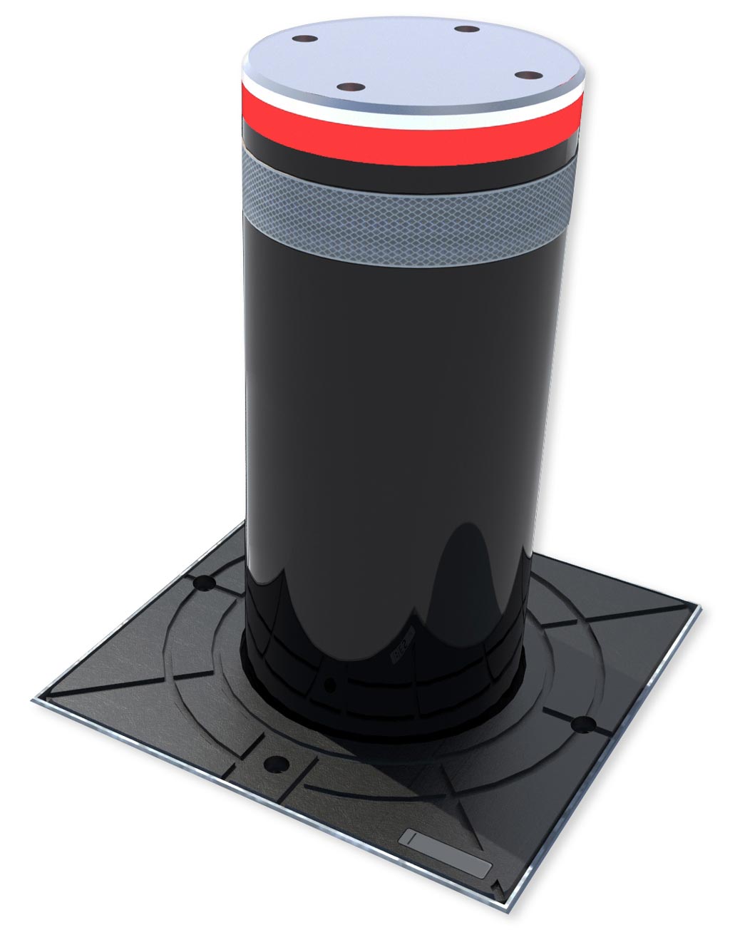 • la borne escamotable type ALEA25-60 de chez AMCO acier ép 10mm, Ø 25cm, hauteur 60cm à motorisation hydraulique intégrée , fonctionnement intensif 3000 manoeuvre/jour, logique de commande par ONE-C, bandeau lumineux LEDs rouge, chassis porteur en acier renforcé, système de guidage et butées basses avec traitement anti-corrosion, caisson de coffrage en acier galvanisé, plaque de sol, chemisage interchangeable et dessus de borne en INOX.