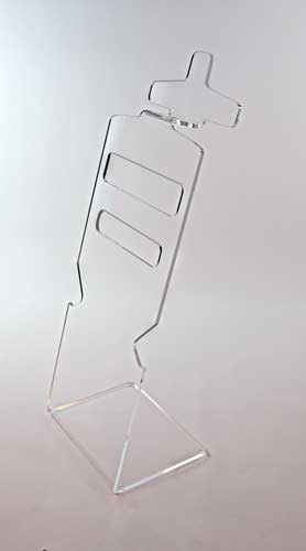 Il est fabriqué en plexiglas transparent d’une épaisseur de 1 cm, découpé au laser et plié à chaud.