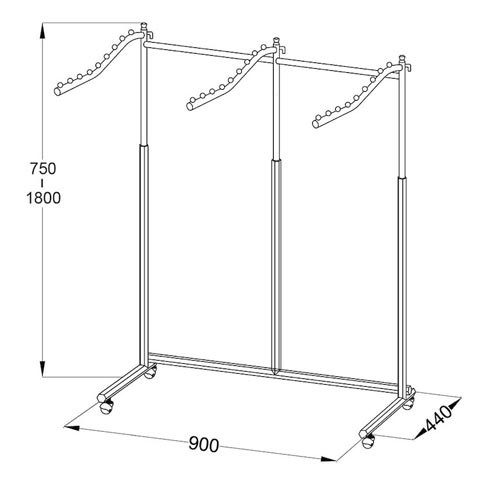 | Réf. TC :819541416 | Porte-vêtement autoportant mono-face | Triple | 750-1800 | 900 x 440 | 40/45 | -