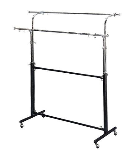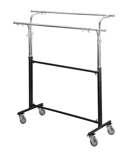 Porte-vêtements autoportant double largeur avec roulettes