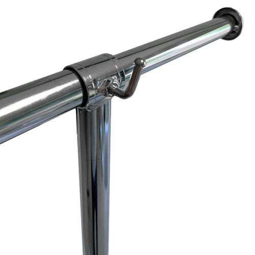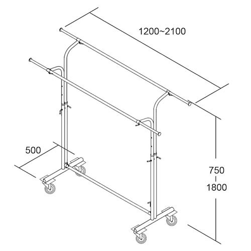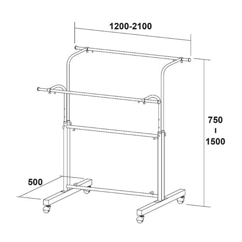 Ce porte-vêtement autoportant est ajustable en longueur de 1200 à 2100 mm grâce aux rallonges de chaque côté.