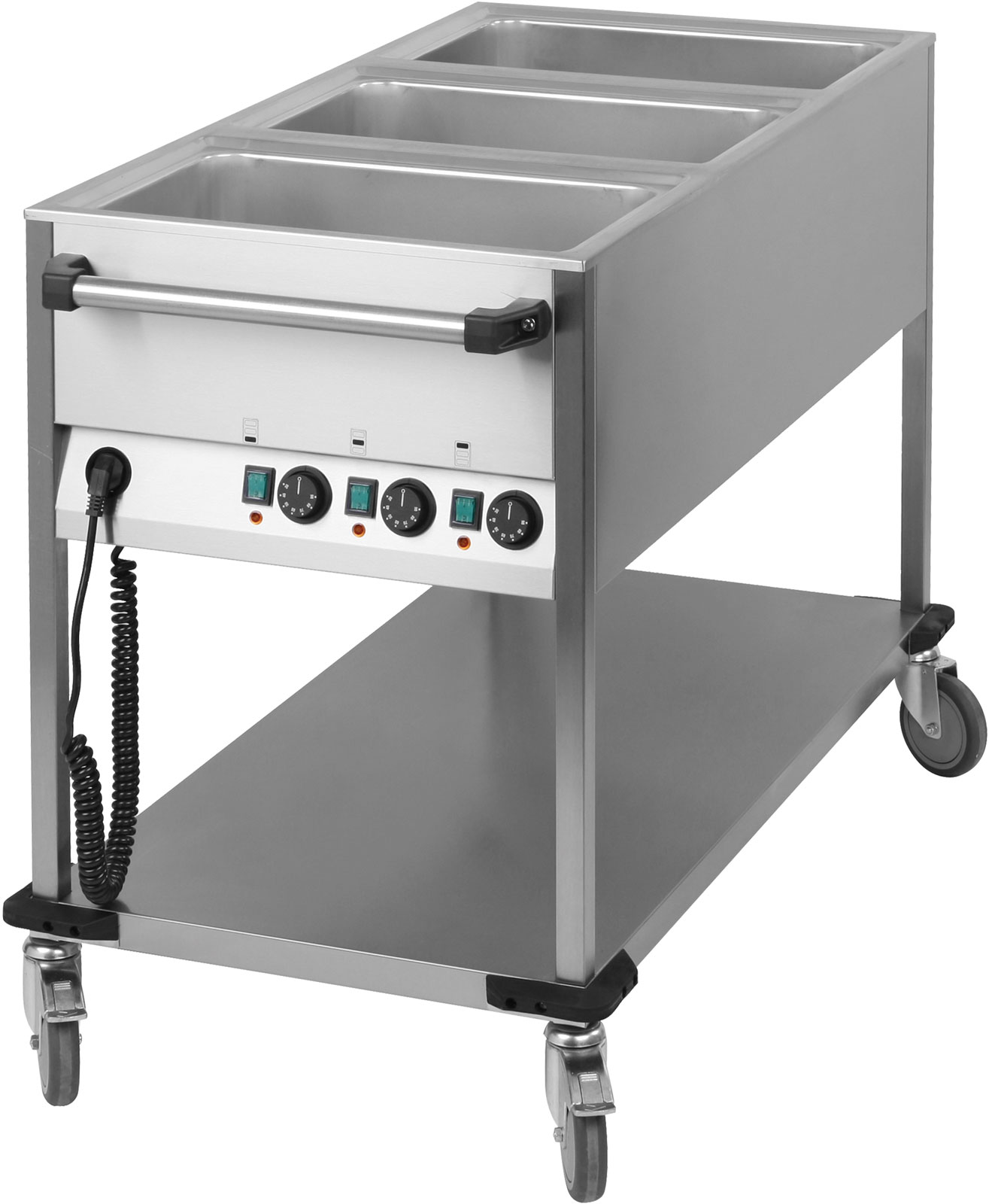 Ce chariot bain-marie 3 x GN 1/1 verticale est idéal pour la distribution de repas en liaison chaude.