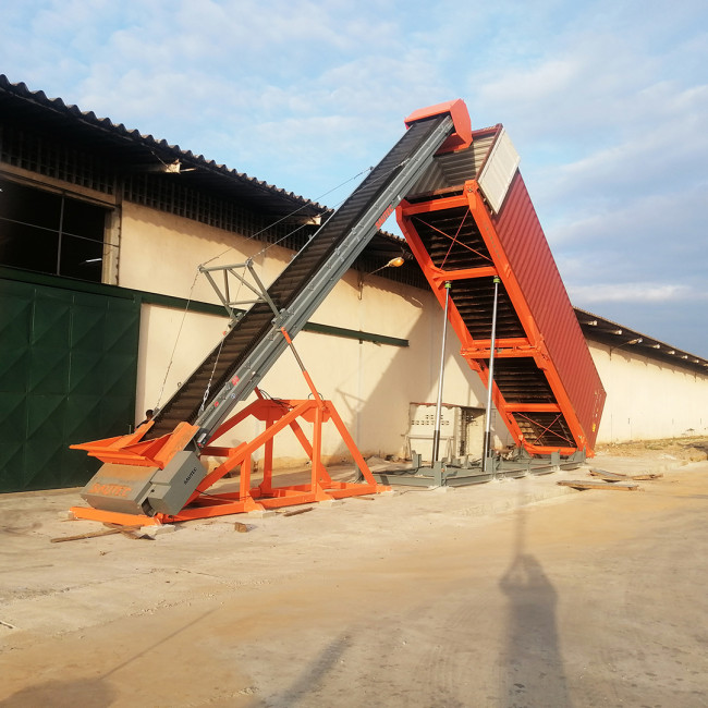 Le basculeur de containers 40 pieds permet un chargement par gravité des produits granulaires et des déchets ferreux et non ferreux. L’inclinaison des conteneurs permet un chargeme