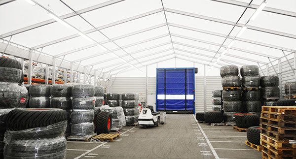 Je recherche une structure de stockage démontable de 8 mètres de long et 6 mètres de large. Une hauteur de plafond de 3 mètres. La porte de la structure doit pouvoir laisser passer un charriot élévateur manuel pour la logistique.
