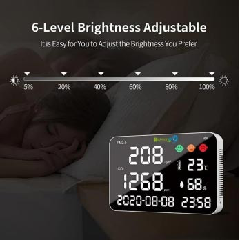 - Alarme sonore CO2 avec bouton Activer/désactiver du son de l'alarme