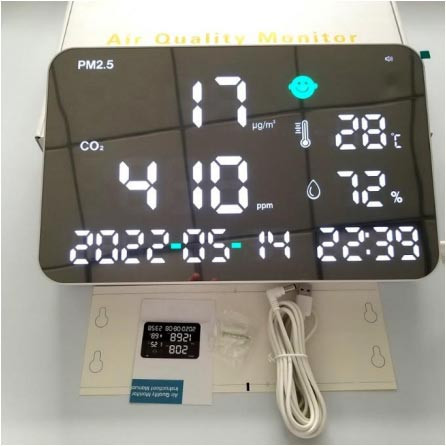 Le KAPM140 est un Moniteur multifonctionnel de la qualité de l'air. Il détecte le dioxyde de carbone (CO2), la température, et Humidité avec horloge, date et fonction d'enregistrement sur 24H.