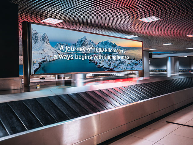 - Halls d'accueil et zones de transit : Ces écrans captent l’attention des passagers en affichant des publicités, des informations sur les boutiques hors taxes ou des promotions exclusives.